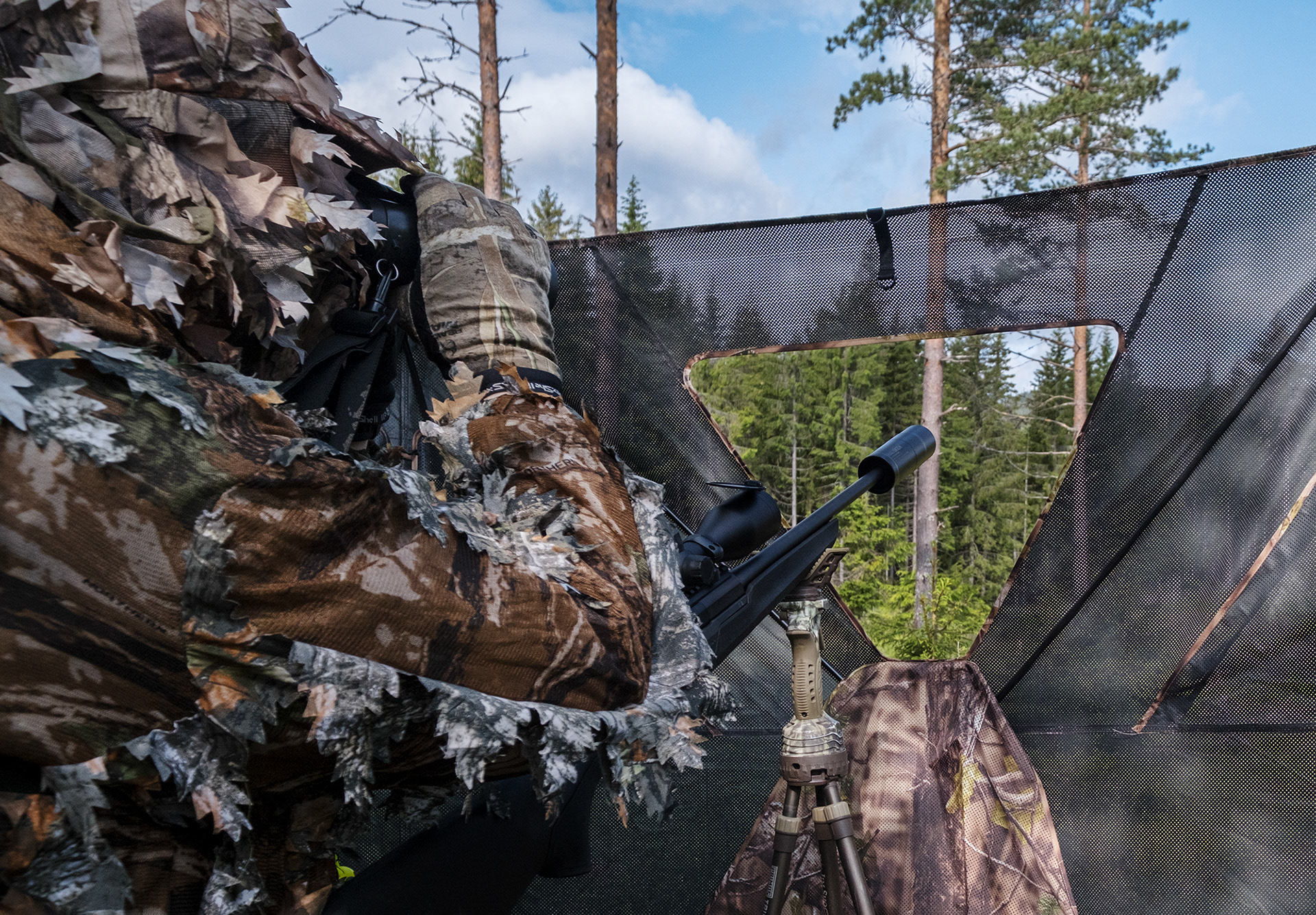 Produktbilde i naturlige omgivelser. Kamuflasje til jakta på oppdrag for Friluftsmagasinet AS.