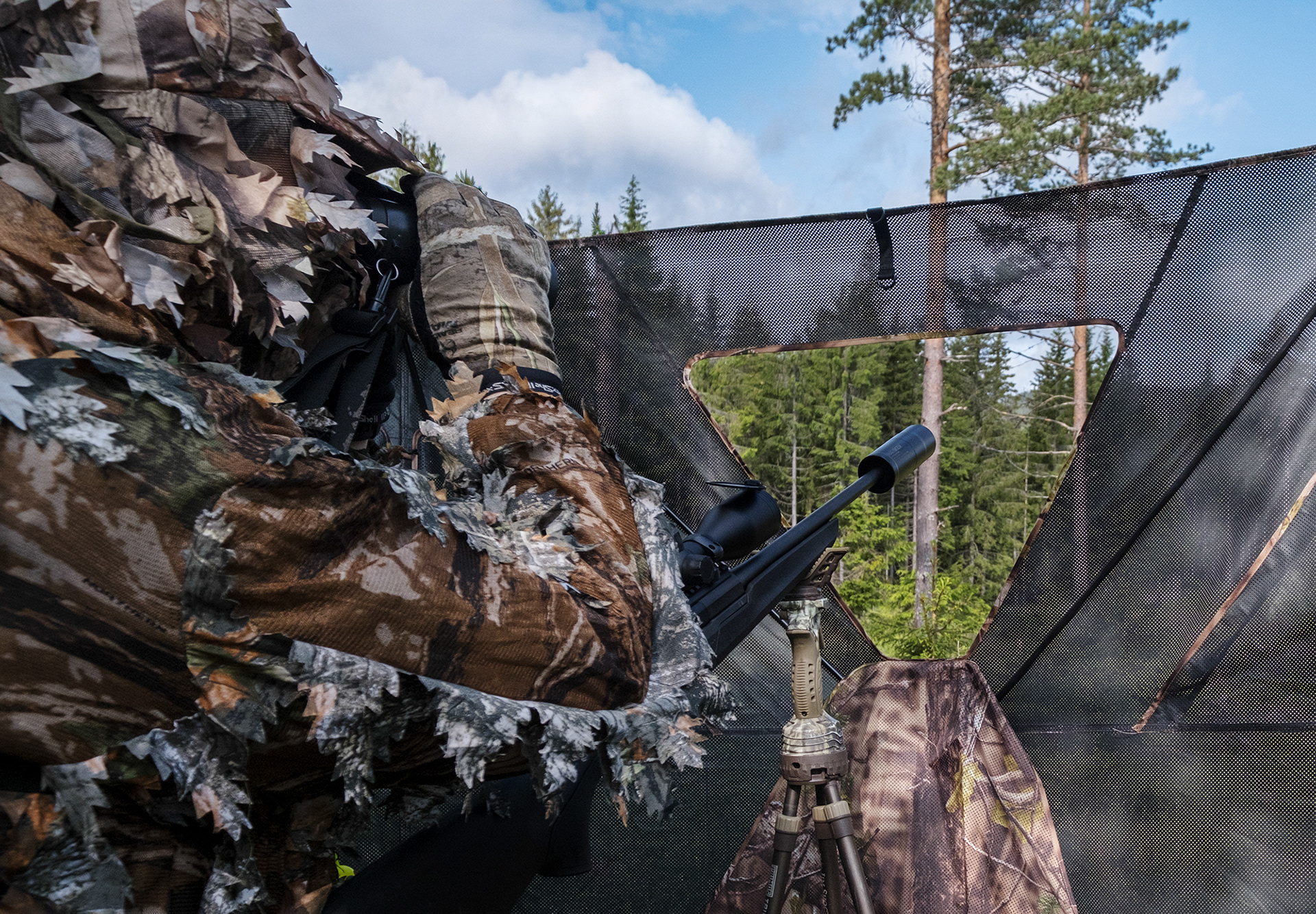 Produktbilde i naturlige omgivelser. Kamuflasje til jakta. Oppdrag for Friluftsmagasinet AS.
